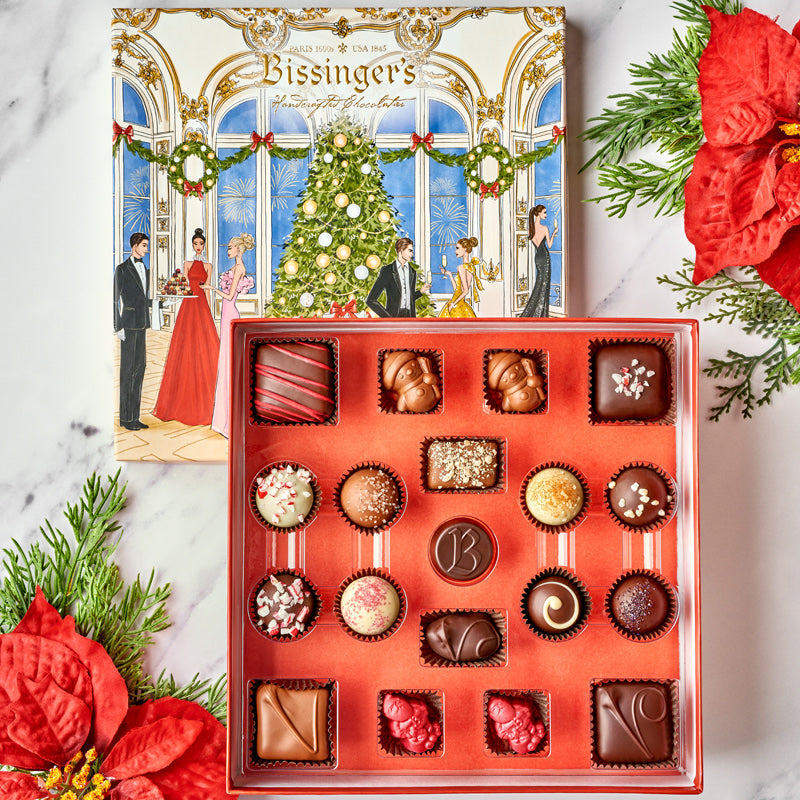 Milk Pecan Caramel Square | Dark Parisian Caramel | Dark Cranberry Orange Caramel | Dark Peppermint Marshmallow | Dark Peppermint Truffle | White Peppermint Truffle | White Eggnog Truffle | Milk Crème Brulee Truffle | Dark Champagne Truffle | Dark French Vanilla Butter Crème | Milk Almond Butter Toffee | Dark Caramel Filled Red Santas (2) | Milk Caramel Filled Snowmen | White Christmas Cookie Truffle | Milk Bouche De Noel Truffle | Dark Sugar Plum Truffle | Solid Dark Chocolate B