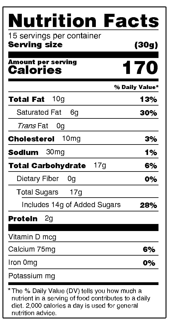 | WHITE CHOCOLATE: INGREDIENTS: White Chocolate (Sugar, Cocoa Butter, Whole Milk, Non-Fat Dry Milk, Milk Fat, Soy Lecithin – an Emulsifier, Natural Vanilla Flavor). ALLERGY INFORMATION Contains: Milk, Soy Products have been manufactured on equipment that process Peanuts,Tree Nuts, Wheat, Egg, Soy, Milk | ![]() |