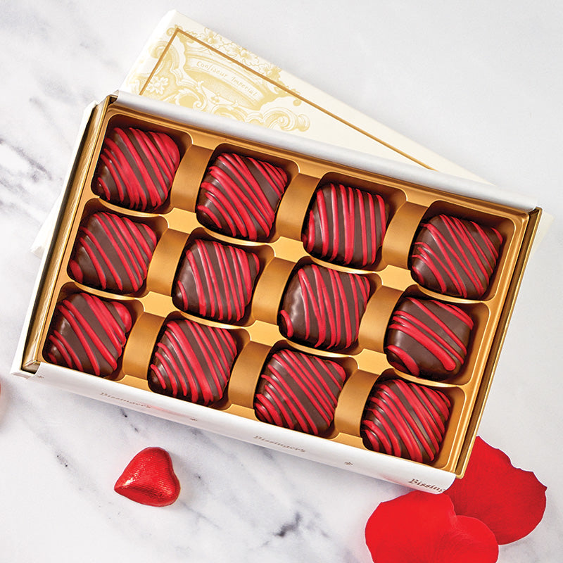 Freshly baked to order by the Bissinger's bakery. Our elegant Red Velvet Cake Petits Fours are made fresh by pasty chefs and crafted with layers of moist red velvet cake, white icing and dipped in Bissinger's 60% Dark Chocolate. Generously sized, they are decorated with a natural red drizzle to make their hearts smile. Great for entertaining too, just open and serve.