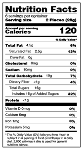INGREDIENTS: Dark Chocolate (Sugar, Whole Milk Powder, Cocoa Butter, Unsweetened Chocolate, Milkfat, Soy Lecithin (an emulsifier), Vanilla), Rice Syrup, Invert Sugar, Cane Sugar, Gelatin, Water, Vanilla